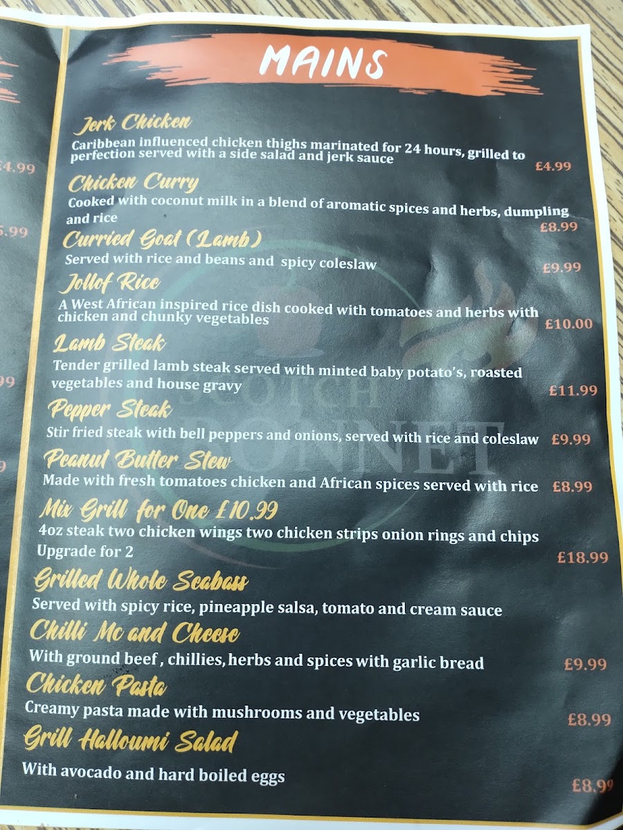 Scotch Bonnet Menu